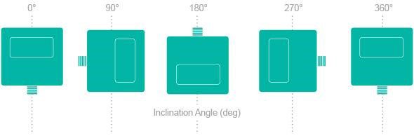 1. A dual axis sensor that is used for horizontal mounting. This version got two outputs, one for the X-Axis and one for the Y-Axis. Each of the axes shows the tilt angle with respect to the field of gravity.