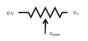 Figure 1: Potentiometers act as a variable resistor, allowing the user to know position based on the ratio of the voltage along the wiper when compared to the supply voltage.
