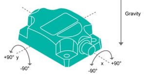 Options also exist for ‘static’ and ‘dynamic’ applications. As the inclinometer by definition is making a measurement due to the force of gravity (an acceleration) on the sensor, any other accelerations such as shock or vibration will impact the measurement. ‘Dyanmic’ inclinometers, such as the POSITAL AKS series, rely on the use of an internal gyroscope for position data when the inclinometer is experiencing movement.